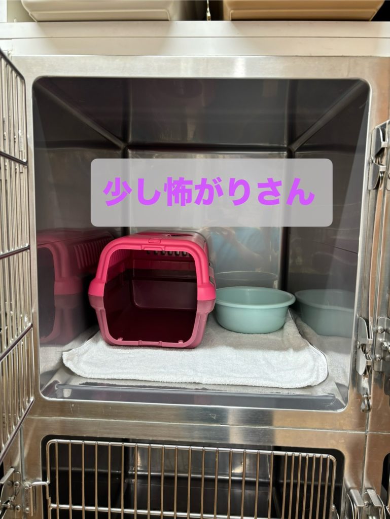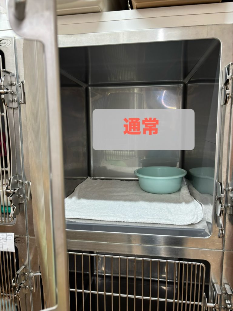 通常は床にタオルを敷いて、トイレを入れて管理をしますが、怖がりの子には隠れられるところや、目隠しをしたりして、少しでもストレスがかからないようにしています。