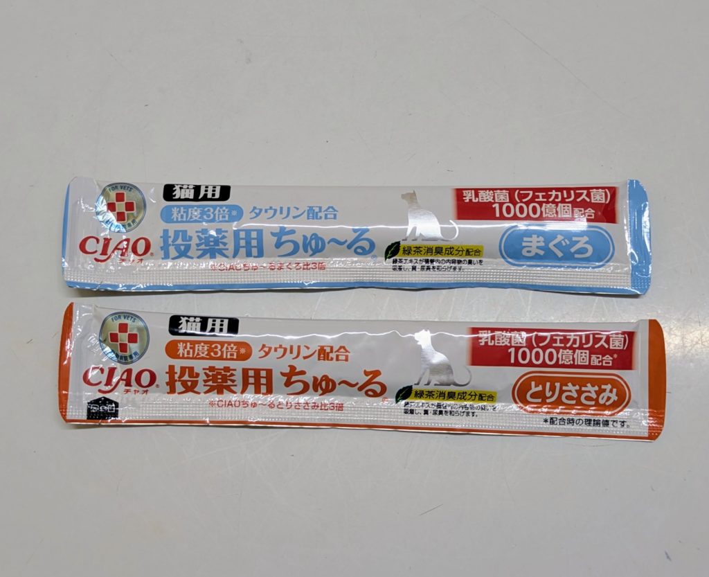 また、錠剤を包むのに便利な粘度の高い投薬用のちゅーるもございます。