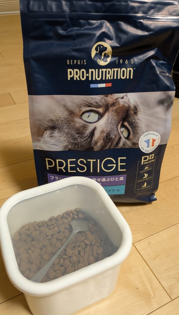 1週間程度分のドライフードを密閉容器に移し替えて、そこから毎食分を取る。密閉容器分がなくなったら大袋からまた密閉容器に移し替えて、とやっていくと、大袋で待機しているドライフードが酸化する回数を抑える事が出来ます。
